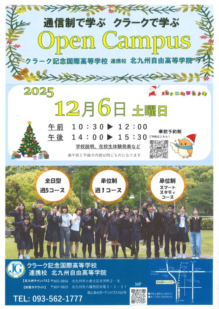 オープンキャンパスのご案内(本年最終) - 北九州自由高等学院【クラーク記念国際高等学校 連携校北九州キャンパス】